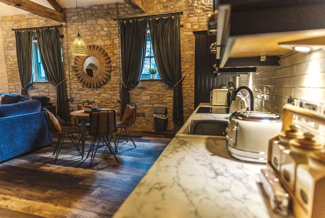 Once working stables, now thoughtfully converted into stylish cottages and suites. These spaces combine rustic materials with modern comforts, set around a peaceful historic courtyard.